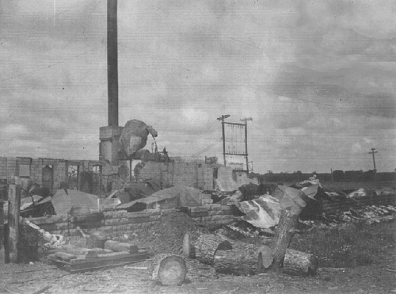 On July 4, 1941, Joe Prien's Box Factory in Riplinger, Unity Township, Clark Co. WI, was destroyed by fire. Paul Blum of Marshfield purchased stock of the company and rebuilt in the spring of 1941. The name of the factory was changed to Blum Brothers Box Factory. In 1947, Martin VerKilen became foreman. On Nov. 30, 1960, the factory was discontinued and the manufacturing was moved to Marshfield. On Dec. 29, 1972, Blum Brothers sold their manufacturing plant to Donald Fischer and Corwin Dallman. The photo of the devastation, (pictured above) is from the Gene Prien collection.