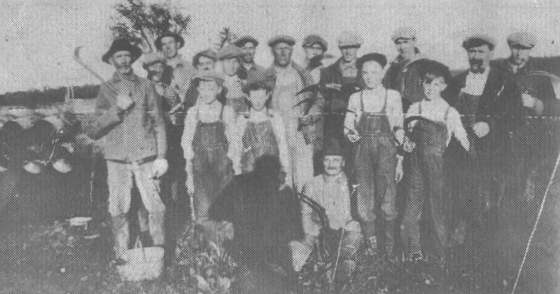 Pictured above is the crew of corn cutters at A. W. Justman's farm in September, 1926. It was a wet year and the corn had to be cut by hand.