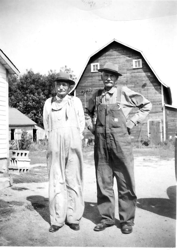Above is a picture of Rev. Dixen and his brother from Iowa, taken 1950 on the Fred Miller farm. Rev. Dixen served as pastor of the Withee, Clark Co., WI Danish Lutheran Church.