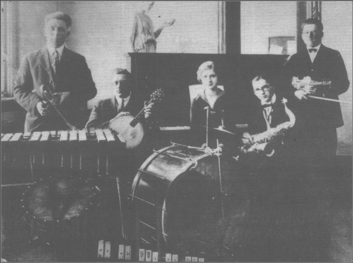 Below is a photo of Keller's Silver Dome Orhestra. This band often provided music for dances at the newly-built Silver Dome Ballroom, in 1933. The ballroom was also owned by the Keller Brothers. Those pictured in the photo from left to right are: Bob Dryden, Paul Keller, Eva Quinlan, Hank Keller and Bill Keller. (this photo is provided courtesy of Roy Keller and Dee Zimmerman of the Clark Co. Press).