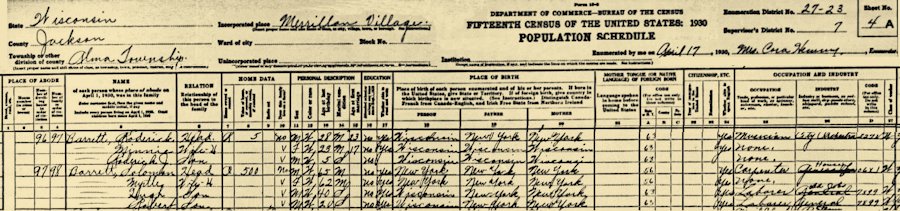 Roderick J Barrett Male 5 1925 WI Single White Son WI WI