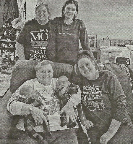 Shown are (seated) great-great-grandma Stoss, holding (l) Huxley Scott and (r)