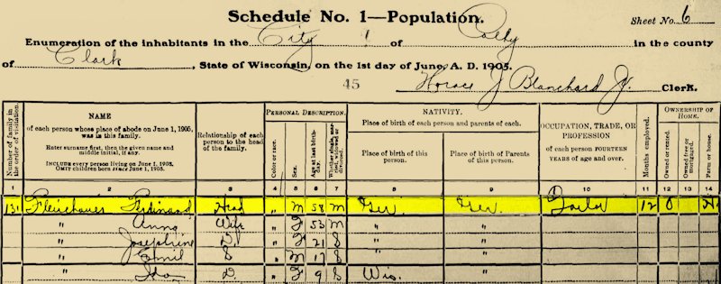 1905 Colby, Clark, Wisconsin, United States Census, Household # 63250334, Line #45,Page #45