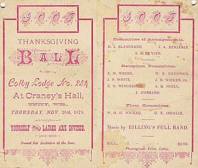 History: Colby, WI I.O.O.F. Thanksgiving Ball (1878)