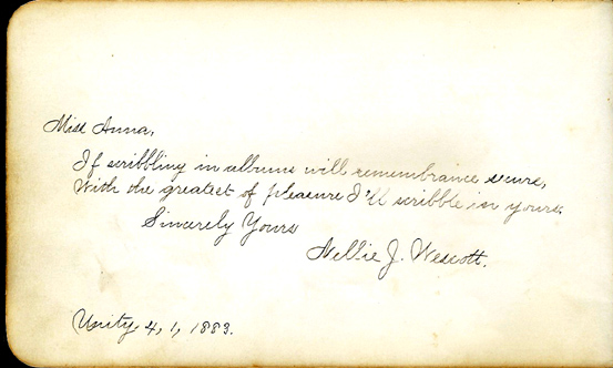 History: Olson Album#1--Nellie J. Wescott (1883)