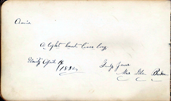 Pictured above is a page from an autograph album which once belonged to my great grandmother, Annie Petrie Olson. Annie's family - Adam Petrie, Elizabeth Moore Petrie and children George Walter, Edith and Annie lived in Unity from 1874 until 1888. The book must have been a Christmas gift in Dec., 1879. I counted 71 pages in the album with inscriptions from friends and relatives (1879 - 1889). Each inscription is hand written, usually with name, date and town. Some of the calligraphy is wonderful. In paging through, I see Unity, Thorpe, Brighton, Chippewa Falls, Concord, Stockbridge, Colby, Eau Claire, Neillsville, Oshkosh, Milwaukee, Withee. Most of the entries are from Unity. I eventually hope to provide scans of every page and this one, dated April 16, 1882 was from Mrs. Ida Barker of Unity, Wisconsin.