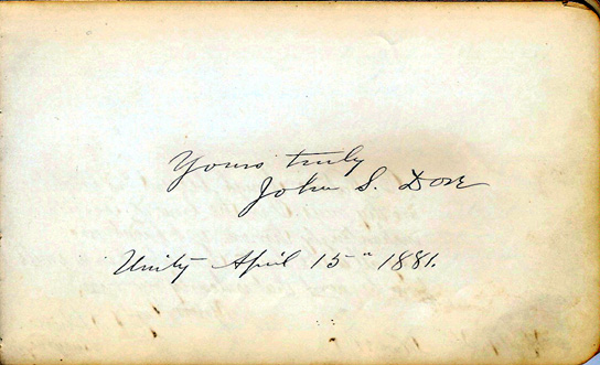 Pictured above is a page from an autograph album which once belonged to my great grandmother, Annie Petrie Olson. Annie's family - Adam Petrie, Elizabeth Moore Petrie and children George Walter, Edith and Annie lived in Unity from 1874 until 1888. The book must have been a Christmas gift in Dec., 1879. I counted 71 pages in the album with inscriptions from friends and relatives (1879 - 1889). Each inscription is hand written, usually with name, date and town. Some of the calligraphy is wonderful. In paging through, I see Unity, Thorpe, Brighton, Chippewa Falls, Concord, Stockbridge, Colby, Eau Claire, Neillsville, Oshkosh, Milwaukee, Withee. Most of the entries are from Unity. I eventually hope to provide scans of every page and this one, dated April 15, 1881, was from John S. Dove, of Unity, WI.
