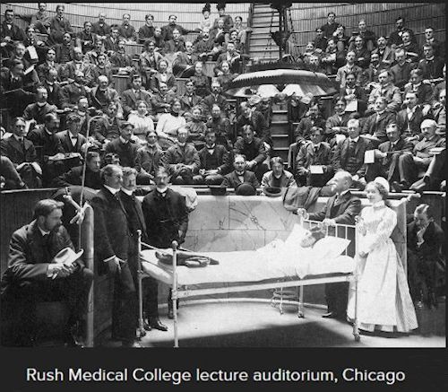 His listing at Rush College states that he already had an "A.M" (a Master of Arts, or M.A.). His home state was Wisconsin. And he did not have a specific individual listed as his preceptor. Under preceptor, "faculty" is noted. This means the faculty of the school approved his admission. The Annual Announcement provides information on admission, course, and graduation requirements, which will give you an idea of what his medical school experience would have been like at the time.