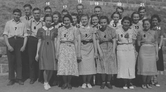 Below is a photo which I found in my mother's album which I'm fairly certain would have been taken in Fairchild, WI where she attended High School from 1937 - 1941). Her family, the Podrovitz', actually lived in Tioga, Hendren Twp., Clark Co., WI. She was the last child born (in 1923) and none of her siblings had attended the Fairchild schools. She was the only one who went to high school. She stayed with a Steinke family in Fairchild so she could attend school during the Wisconsin winters. She then went on the Eau Claire business school and the Waves, then married my father.