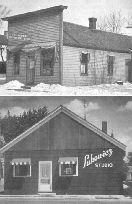 R. P. Dake, started a gallery opposite the Colby House in 1887, Morgan Danks, who built his shop and house on Front Street, was the first resident photographer. In 1901, Leo Lukowicz, with the help of his brothers, John, Frank and August, bought lots on Division St. from Neumeister and built a studio. A partnership which was dissolved after one year. The family also owned a grist mill on the site where the Dugout Bar later stood.