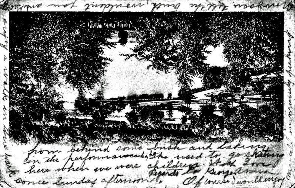 Wis. from Minneapolis, Minnesota, 27 Sep 1907, at 9:30 p.m.. Message: (Rotated Edited Card) Now Josie tell the truth, wouldn’t you and George enjoy a walk in the park some Sunday afternoon. Of course, I would enjoy myself immensely peeking from behind some bush and taking in the performance. Ha Ha. We used to go skating here when we were children. With Love and regards to George. Anna |