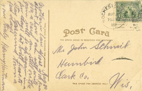 Wis. from Rochester, Minn, 30 Augl 1907 from his brother-in-law,