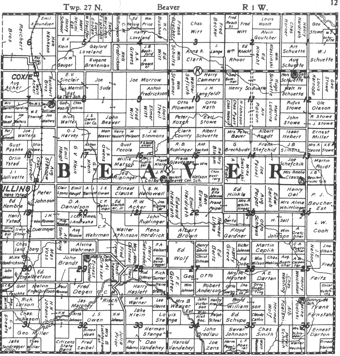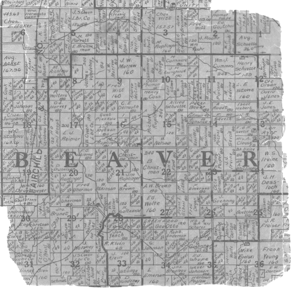 ----Sources. 1880, 1906, 1915, 1920, 1926 Beaver, Clark, Wis. Plat Maps; Beaver, Township, Clark Co; Beaver Township School Histories; Clark Co., Wisconsin Schools, Federal and State Census Records; Newspaper Articles
