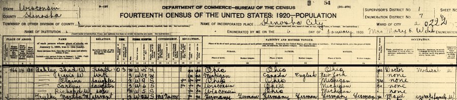 1920 Federal Census, Kenosha Ward 2, Kenosha, Wisconsin, United States, Sheet Letter: A, Sheet Number: 6