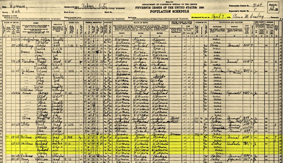 Jay McLean, Male 5 Single White Jun 1895 Wisconsin Wisconsin Wisconsin Son