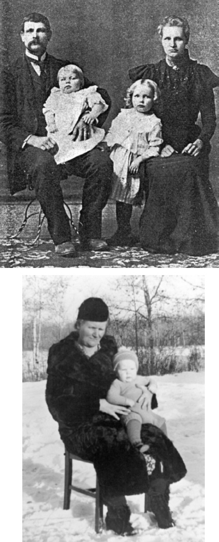 The bottom photo is Gurine Lauen holding grandson Everett Lauen at farm by Weldon, Saskatchewan, Canada. Taken winter of 1947/1948.