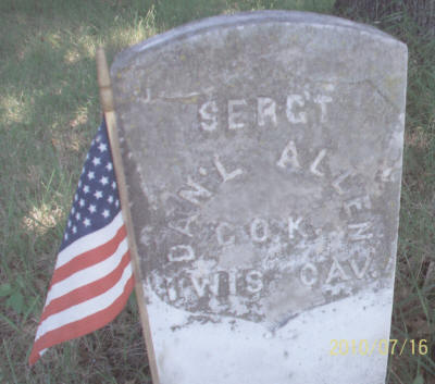 Photo of Sergeant Daniel Allen's tombstone in the Campbell Cemetery, La Crosse, Wisconsin (provided by Duane & Marilyn Horn).