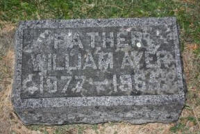 William Ayer (1877 - 1965) was the son of Cullen and Mary Jane (Lampshire) Ayer (1889 - 1920). Both he and his wife Ella M. (Nice) are buried in the Brighton Cemetery, Unity, Wisconsin.
