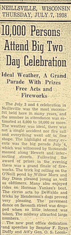News: Neillsville, Wisconsin 2 Day Celebration (1938)