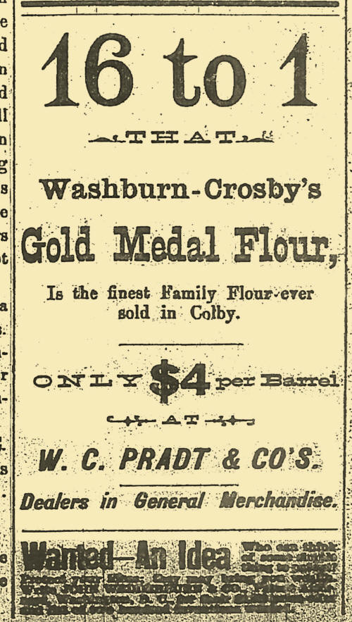 The advertisement below appeared in the Colby Phonograph 1 Oct 1896. This store was operated by Walter Charles Pradt of Colby, Clark Co., Wisconsin.