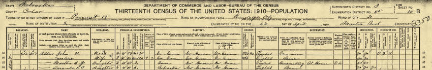 1910 Cedar County, Neb. Census for Henry and Caroline Alber's Family