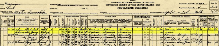 Close Neighbors & Friends Recorded on the 1930, Weston Twp., Clark Co., WI Census
