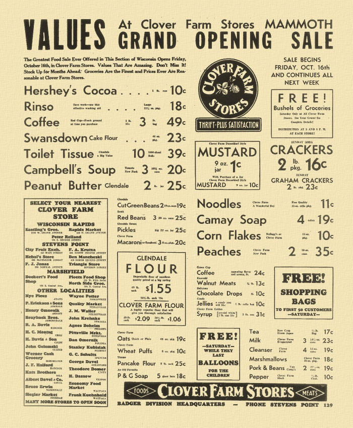 Theo Domer's Clover Farm Store was located in Unity, Wisconsin.