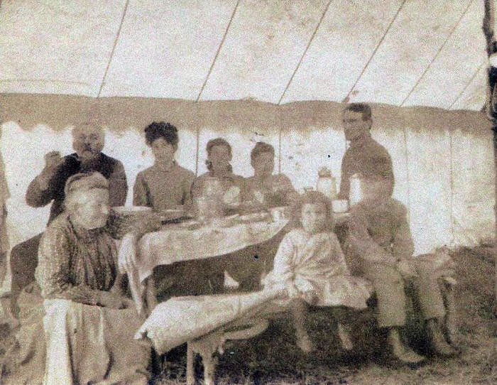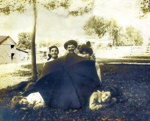 From Left: Carrie (Vernum) Newell, Wilder Newell, Eva (Newell Marden, Clara Newell, ?, Leslie Marden, Girl: Unknown, Boy: Cassius Newell |