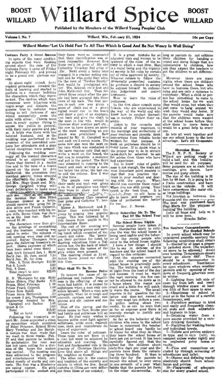 ----Source: Willard Spice, Willard WI (Feb 21, 1924), Volume 1, No. 7