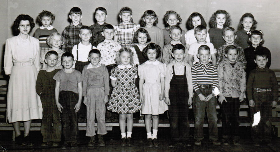 Second Row: Miss Schmidt (Mrs. Garth Luchterhand), Kay Rossow(1), Steve