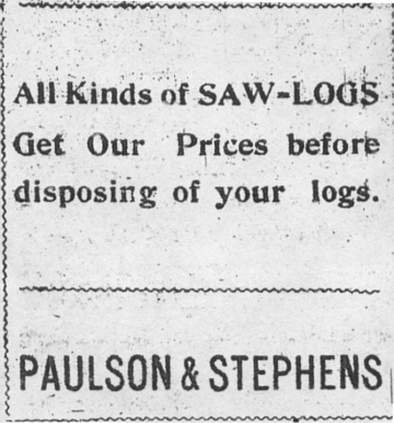 The Ad below featured the Paulson & Stephen Saw Mill of Dorchester, Mayville Twp., Clark Co., WI.