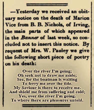 Obit: Vice, Marion (1854-1878)