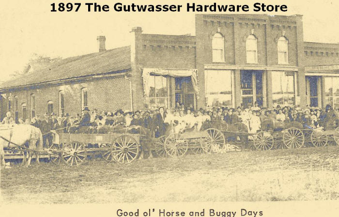 Mr. Gutwasser was a quiet, sober, industrious businessman who cared more for business than society, but still fine and friendly when you knew him well. We can well call him one of our pioneer stock who took things as they were without complaint for well we know that when they started business in 1883, the money was note plentiful as it is now, in spite of what pessimists try to tell us and the businessman had to be optimistic and shrew too, to make a go of things, but Mr. Gutwasser was all this and succeeded as he well deserved.