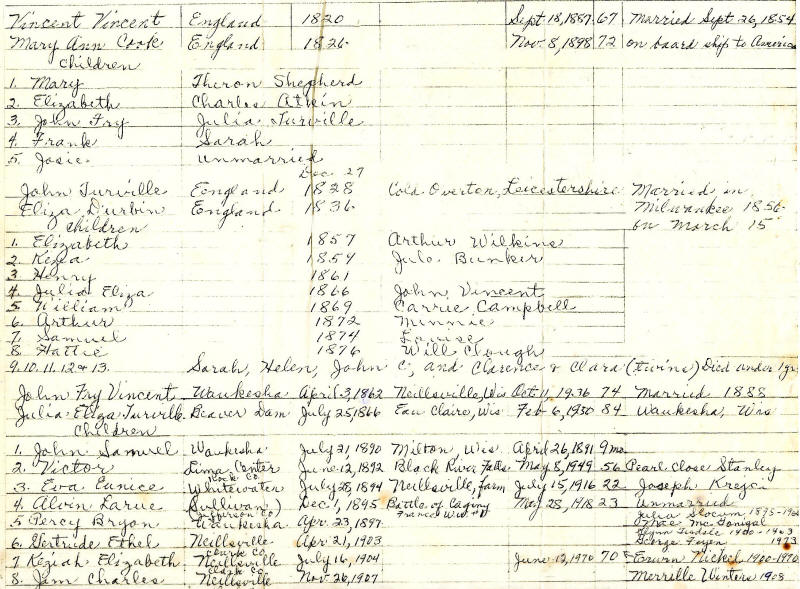 County of Waukesha, Wisconsin. My parents were John Fri Vincent and Julia Eliza