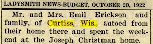 A family reunion was held Sunday at the home of Mr. and Mrs. Emil Erickson. Those attending were Mr. and Mrs. Norbert Christianson and family, Wisconsin Rapids; Mr. and Mrs. Milton Prien, Spencer, Wis.; Mr. and Mrs. Carl Erickson and family, Keenan; Mrs. Andrew Fern, California; and Mr. and Mrs. Hugo Erickson and daughter, John Erickson and Salem Erickson, Unity.