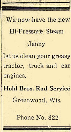 Jacob "Walter" Hohl was born July 4, 1914 in Greenwood to Edwin and Katherine (Sonderegger) Hohl, and received his education in Greenwood schools. He and his brother (Edwin) "Fritz" owned and operated the Hohl Brothers Garage where they also had a  "Rambler" dealership.  It was located where Branstiter is now and was across the street from “Farmers Store”. Ron Hribar