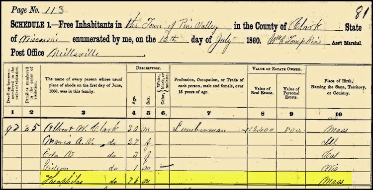 Gideon Clark Male 1 1859 Wisconsin White 11