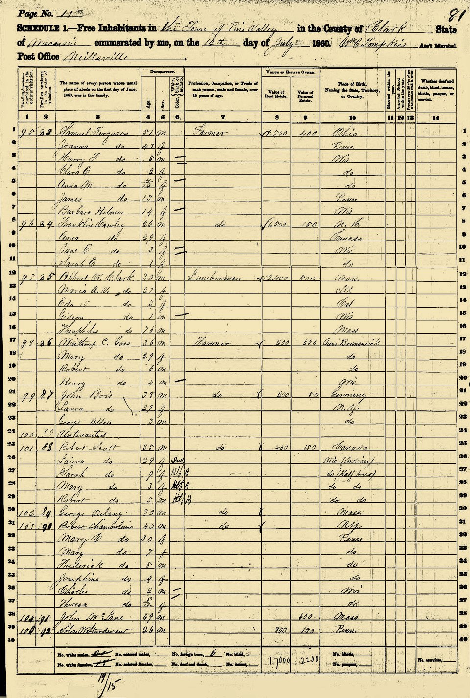 Samuel Ferguson Male 51 1809 Ohio White 11