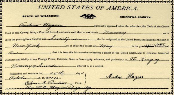 Sam Hagen Male 36 1894 Wisconsin Single White Brother Norway Norway