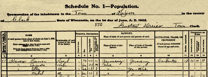 Augusta Karow 35y Herman Karow 1905, F. F 35 Married White W 1870 Abt 1870 WI