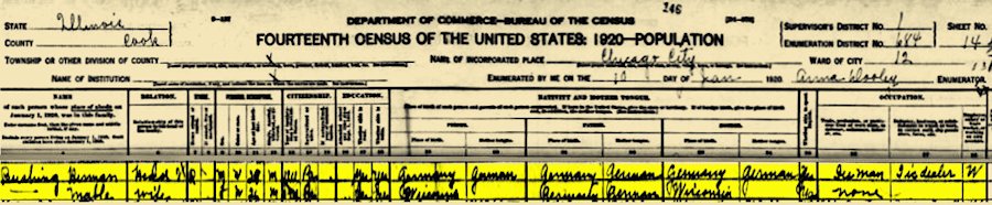 1920 Federal Census Record, Chicago City, Cook County, Illinois
