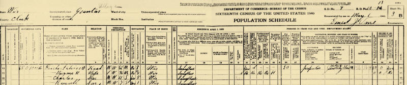 1940 Federal Census, Granton, Wis.-- Alvin Reichart Family