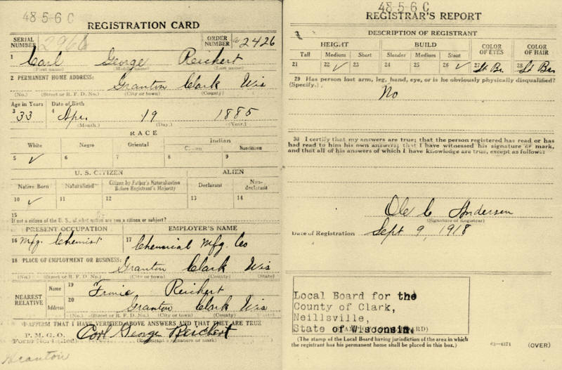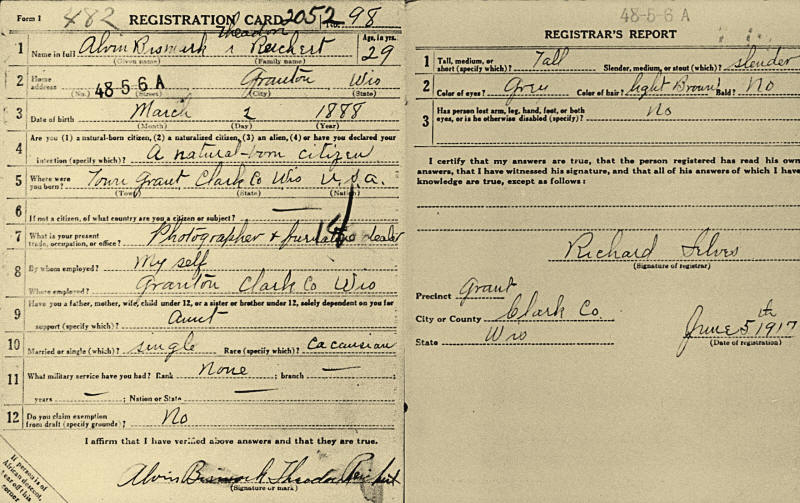 World War I Registration Card of Alvin Bismark Theodore Reichert