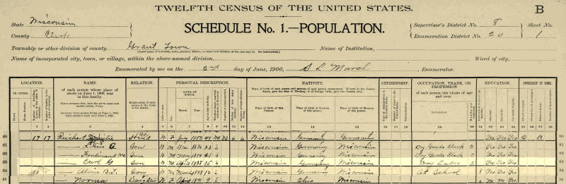 1900 Federal Census, Granton, Wis.--Reichart Family