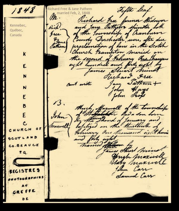 According to his baptism and family records, Arnold Free was born to Richard Free and Jane Pathem in Cranbourne, Quebec, Canada, 6 Jul 1865. He apparently died in an early spring hunting accident 2 Apr 1889, in Neillsville, Wisconsin.