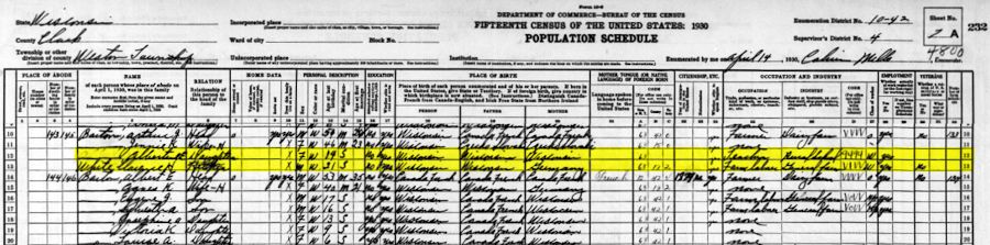 1930 Census, Clark Co., Wisconsin, Weston Twp.,
