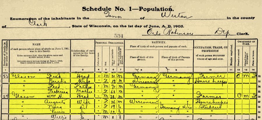 1905 Wisconsin State Census, Weston, Clark, WI