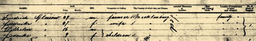 Friedrich Glasow, 49 yr. old (1834) male, b. Mecklenburg