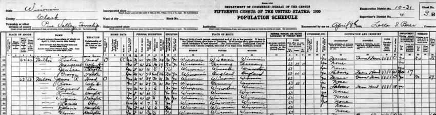 ----Source: Federal Census Records, Wisconsin Birth & Death Indexes, Social Security Death Index, Clark Co., Wis. Marriage Records, Neillsville Cemetery Records, Warlum Family Photo Album