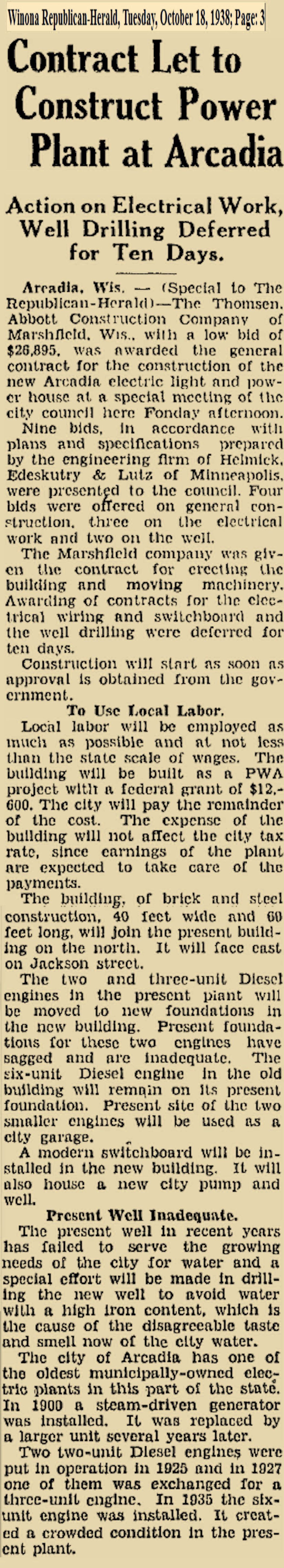 *Curt Bochanyin--Thomsen Abbott construction company. Founded in the 1930's. Still in business Rothschild Wisconsin. They must have had contract for this construction and building.
